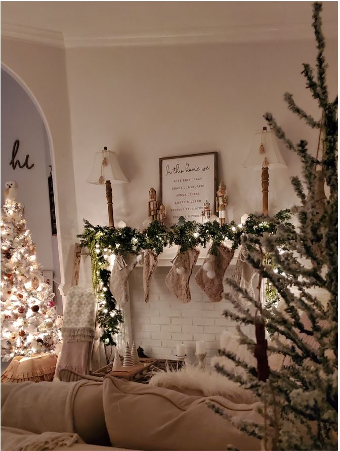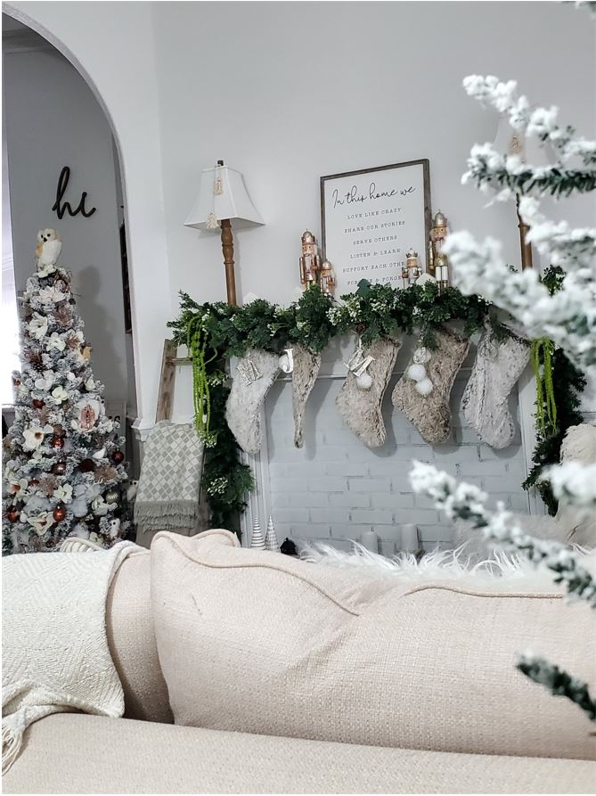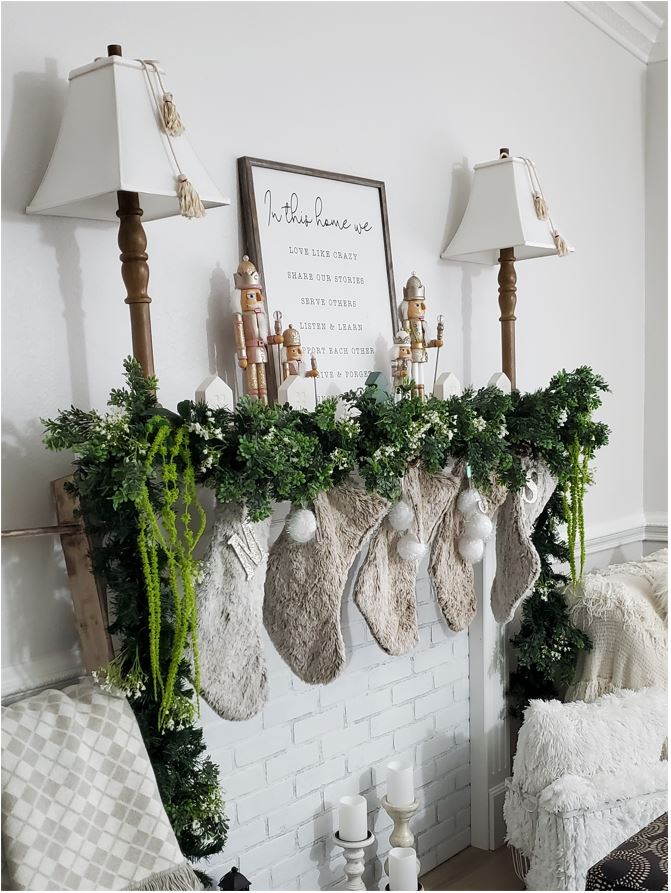 I choose to keep my garland more natural looking with greens and whites. But you can go all out if the budget allows you. Add Christmas ornaments, flowers and ribbon the options are endless check me out on Pinterest https://www.pinterest.com/’lolamojica for more ideas .