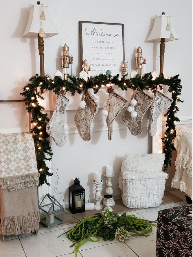 Greenery pictured next to the hearth is a bonus garland How to.