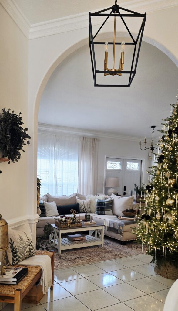 The living room sets the tone for the entire home. This year I leaned into a soft palette. The goal: cozy, elegant, and visually quiet.